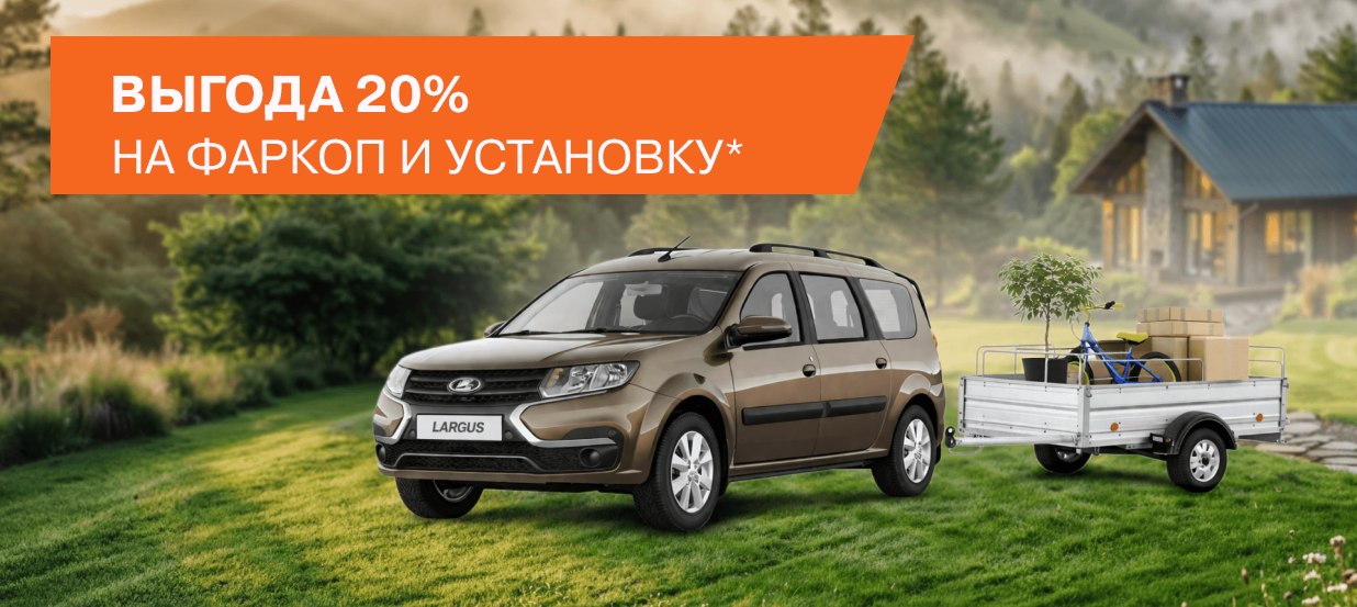 * Акция действует с 16 апреля по 31 августа 2026 года. Скидка 20% распространяется на фаркоп и его установку при покупке в Лада Центр Кунгур. Не суммируется с другими предложениями. Предложение действует на все модели LADA. Предварительная запись обязательна. Подробности уточняйте у ассистентов сервисного центра.